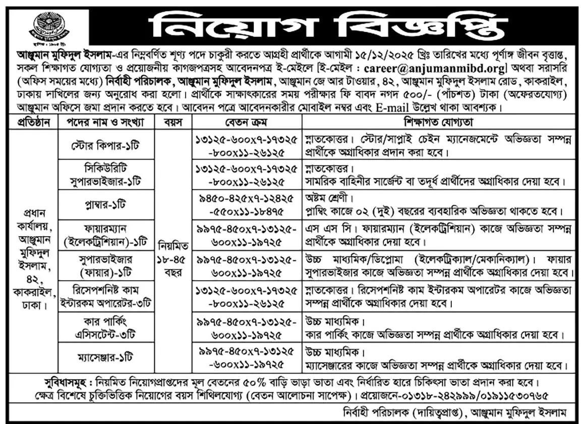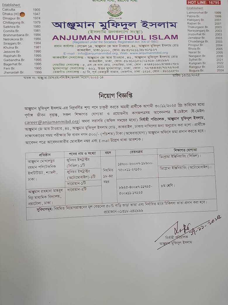 | 7 | আঞ্জুমান মুফিদুল ইসলামের প্রধান কার্যালয়ের জন্য নিয়োগ বিজ্ঞপ্তি - ২০২৫ | 2025-04-23 | 2025-05-05 | view Download |